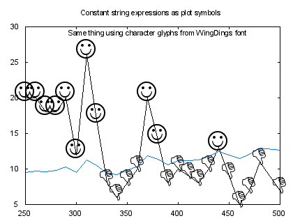 set title "Constant string expressions as plot symbols"