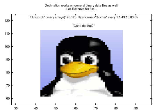 plot 'blutux.rgb' binary array=(128,128) flip=y format='%uchar' using 1:2:3 with rgbimage