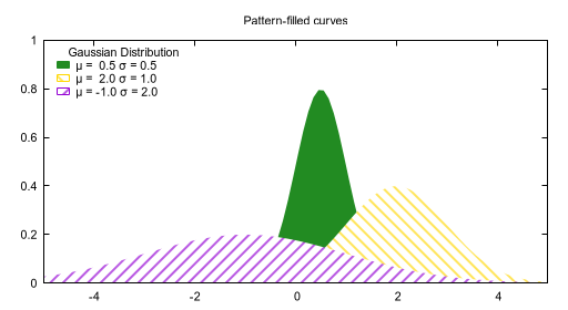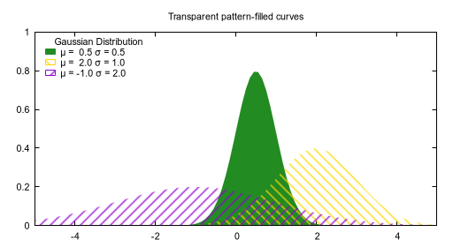 plot d1(x) fs solid 1.0 lc rgb "forest-green" title "μ =  0.5 σ = 0.5", \