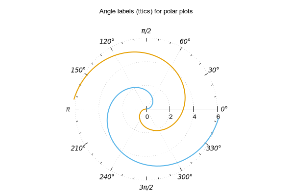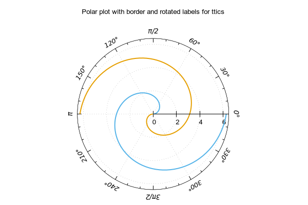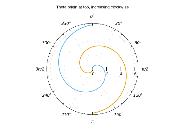 # Use of "set ttics" to place angular labels around polar grid